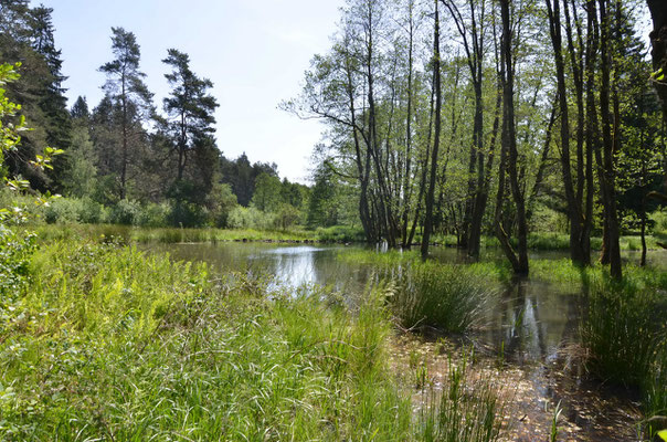 mittlerweile stark verlandet sind. Der Umgriff der Teiche besteht aus Hochstaudenfluren und bachbegleitenden Erlenbeständen sowie Kiefern- und Fichtenwäldern. Die Sturzquelle speist die Teiche